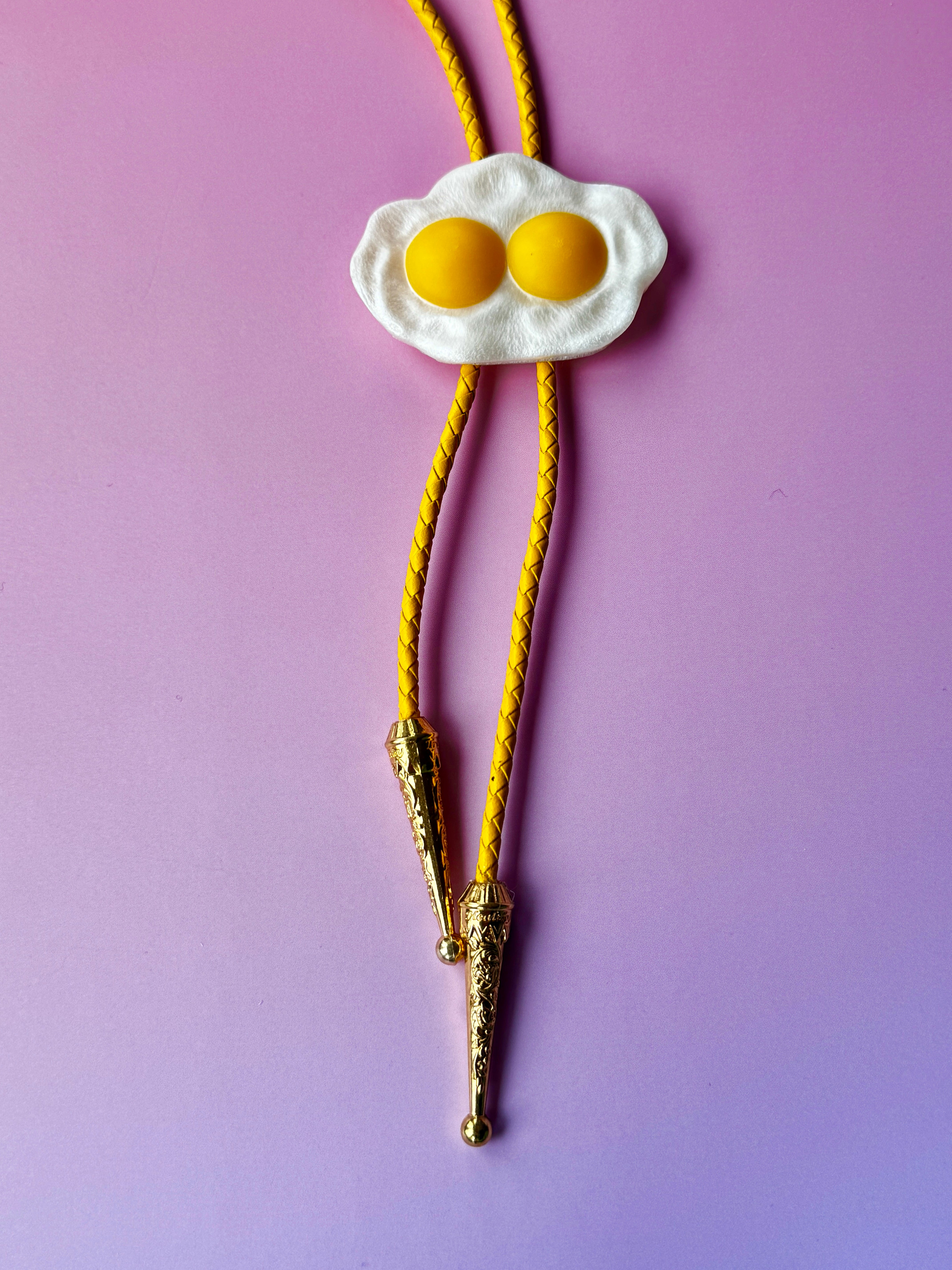 Double yoke ain't no joke! Apparently it's good luck, who knows! Made with genuine leather yellow braided cord with 2" gold tips.