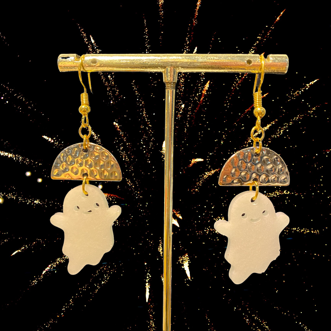 Want to show your spooky side but keep it "classy"? Nab a pair of these Lil' Ghosty's that have a little something extra with the a gold accent.