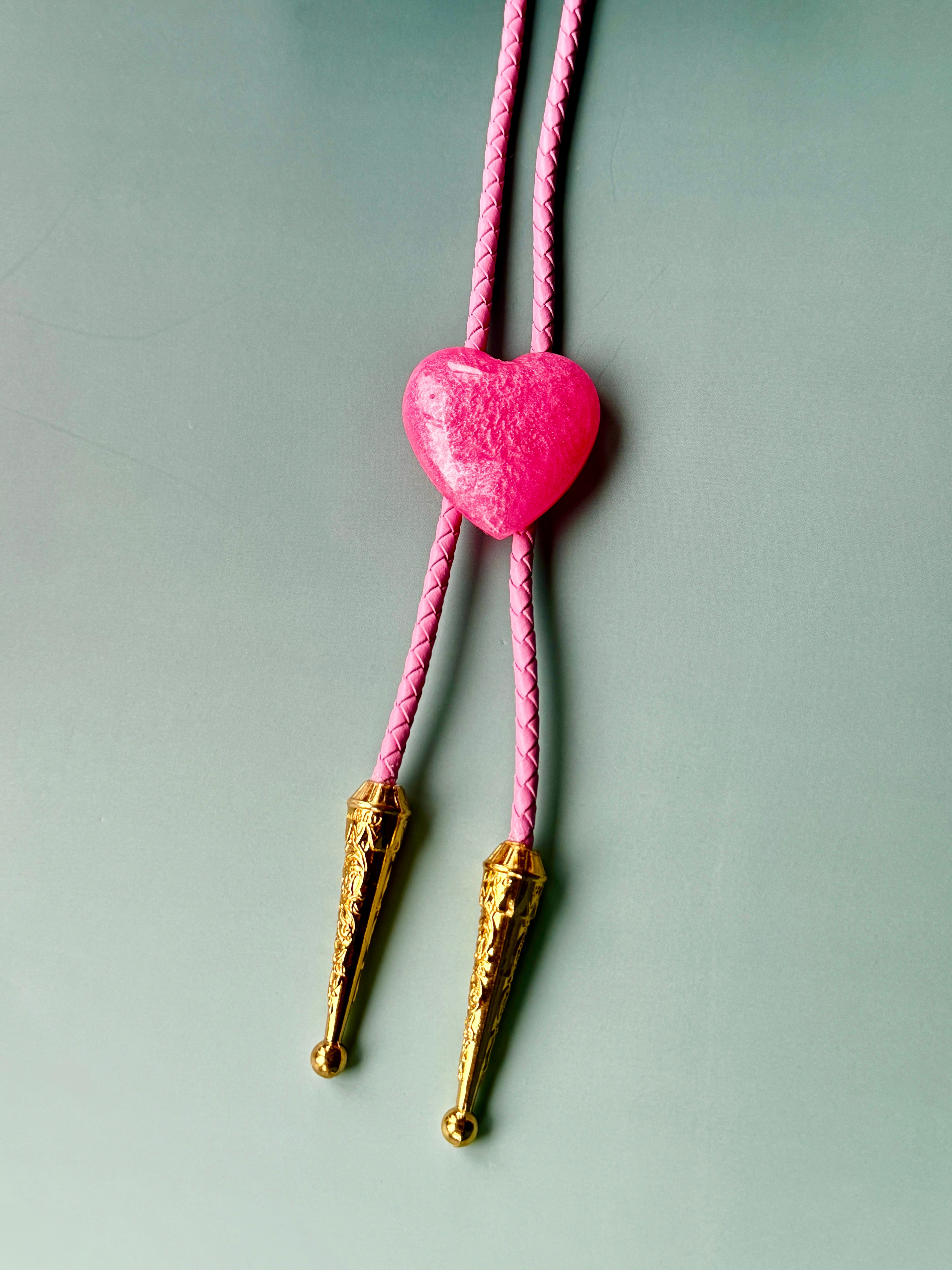 Wear your heart on your chest for all to see with our adorable heart bolo ties. Perfect for adding a touch of playful charm to any outfit. 2" Gold tips.