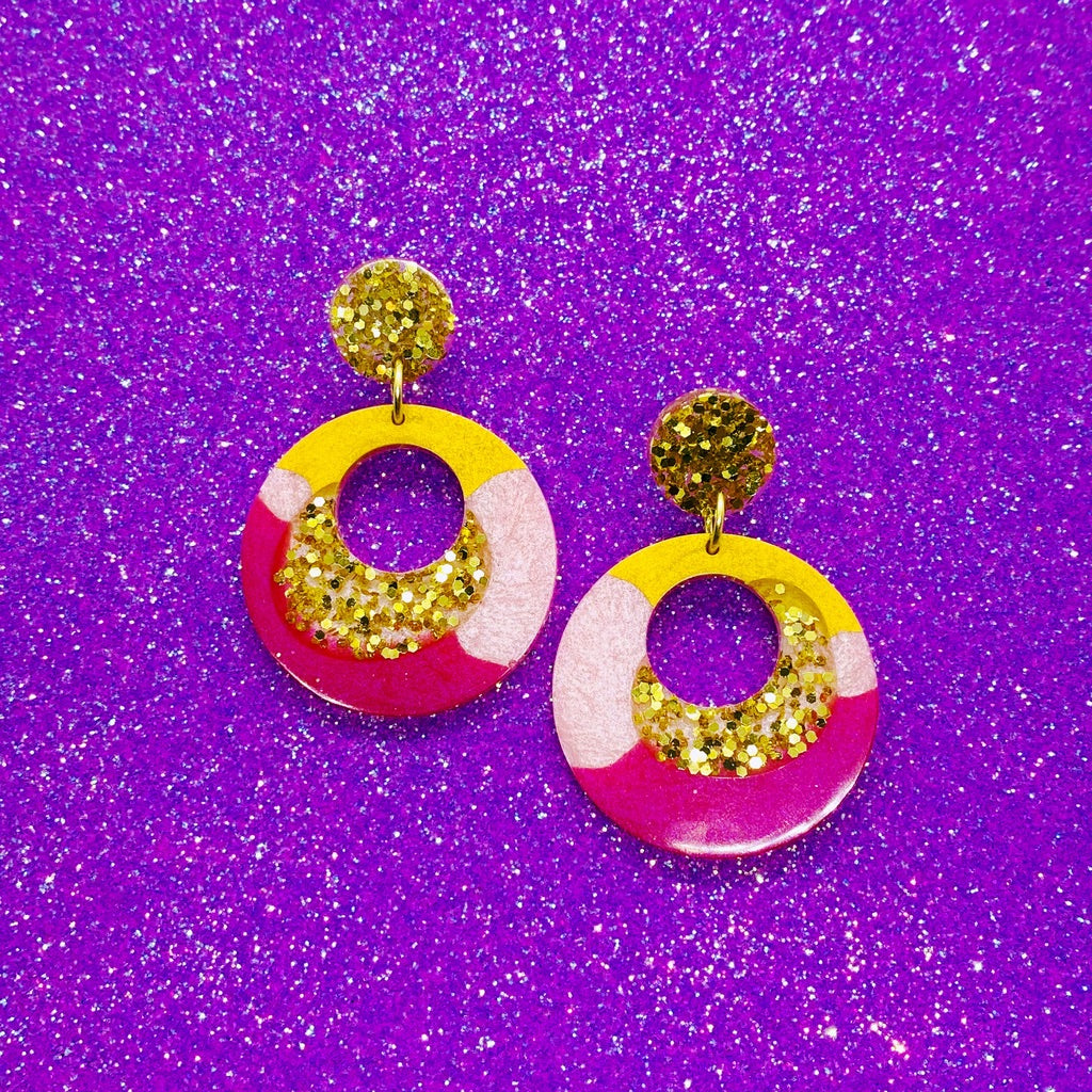 Layered with metallic pink, gold and red with a splash of gold glitter these circles measure 1.5" in diameter.