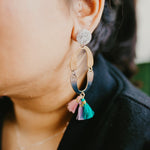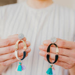 Made with one rose gold and one silver plated piece, three spring flavoured tassels and a delicate silver leaf resin topper to finish it off. Earring pins are made with hypoallergenic alloy metal for those with sensitive ears.