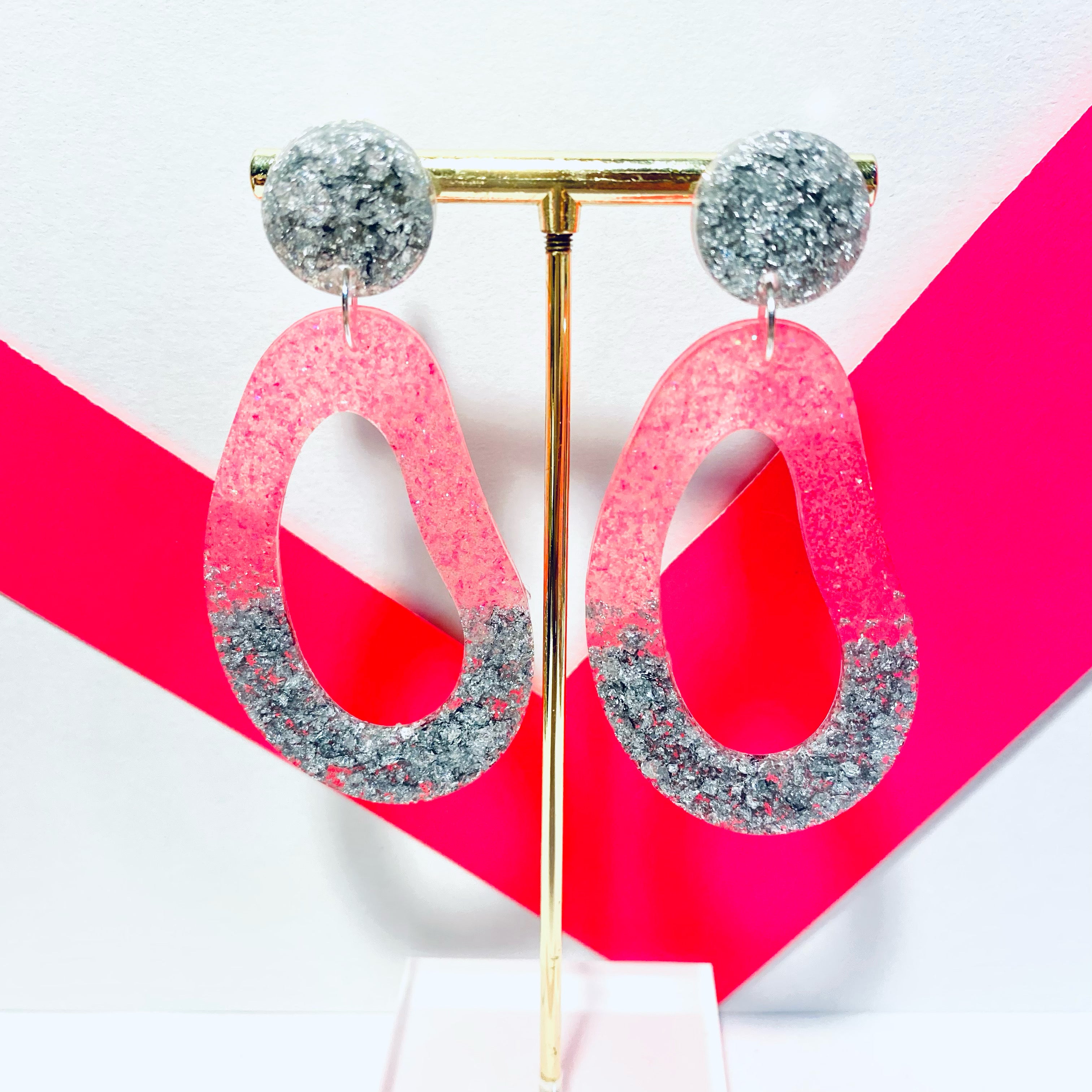 Neon pink glitter and crushed silver leaf leave these lightweight earrings feeling flawless on your ears.