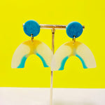 Light weight and made with resin pieces, they dangle about two inches off the ear.