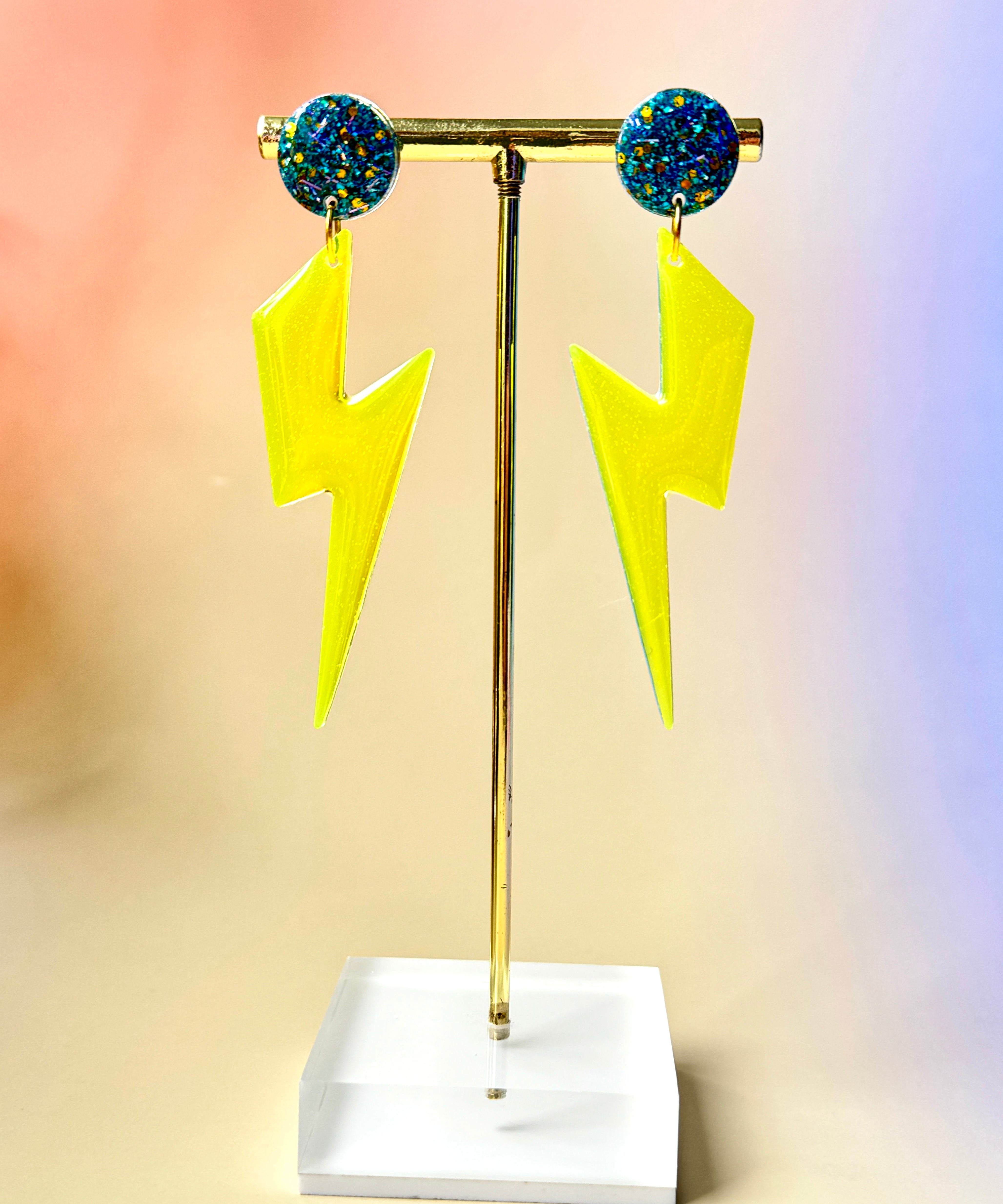 Lightning Bolts - Blue Glitter + Neon Yellow