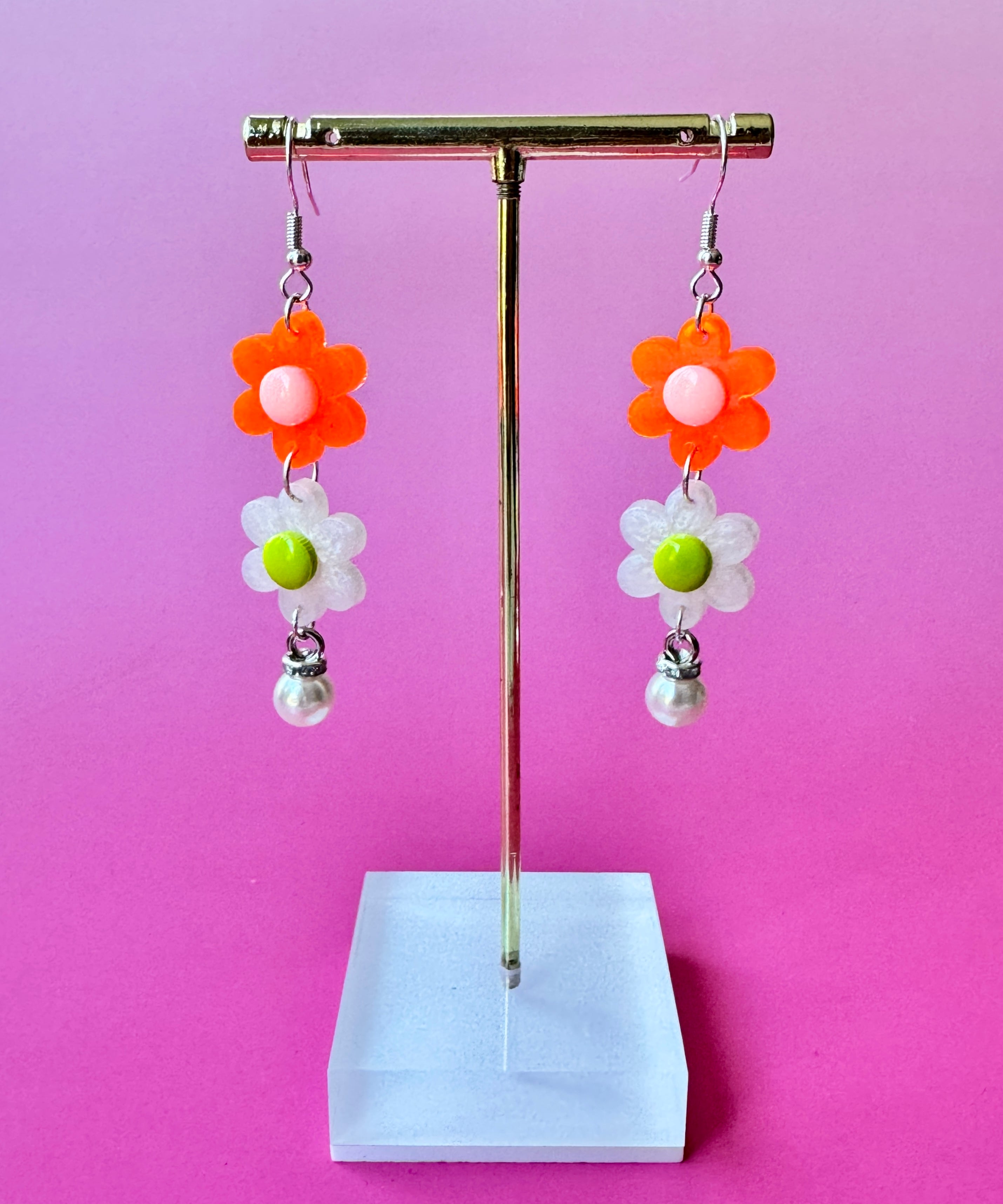 Pearly Flower Dangles - Orange + White