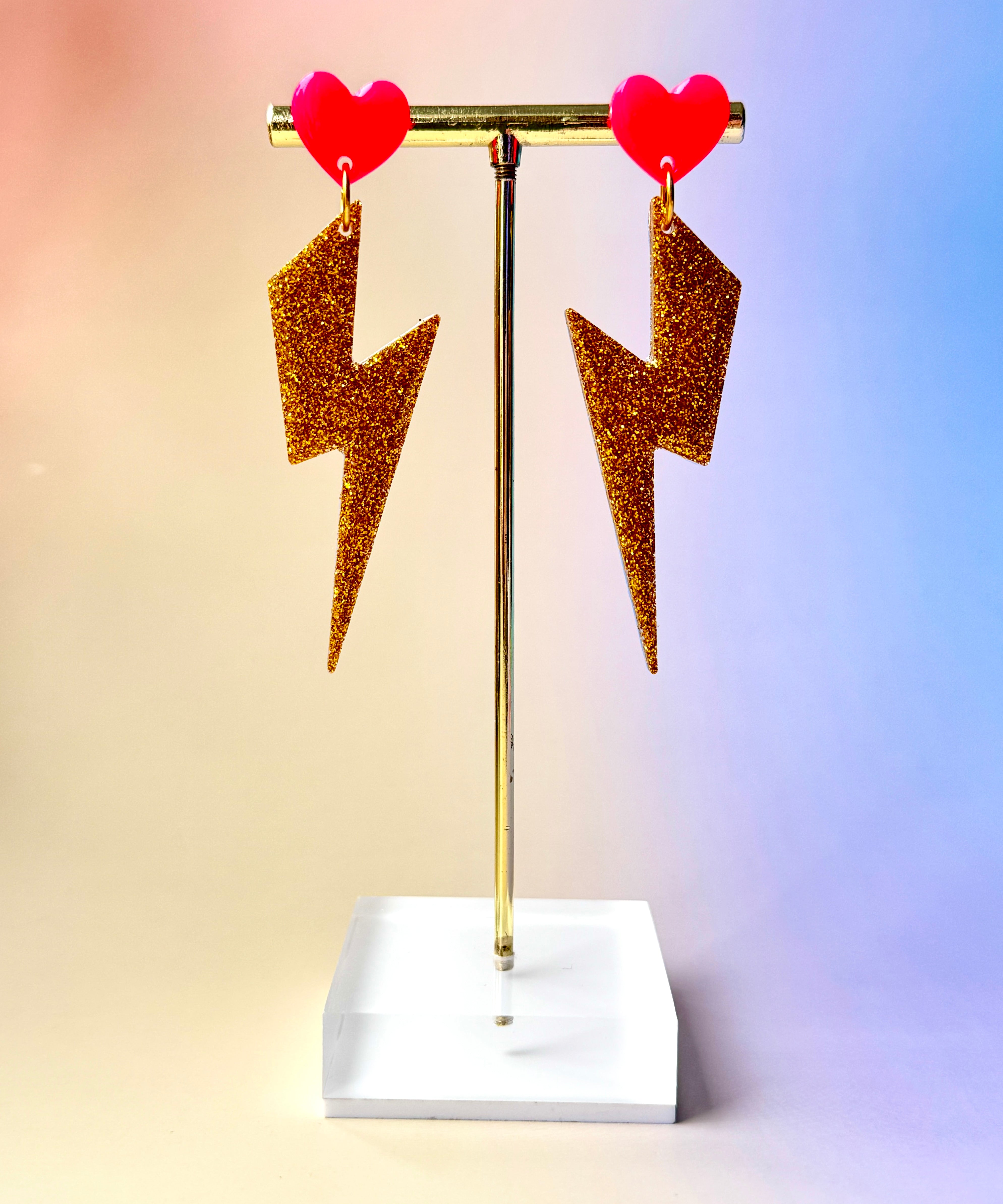 Lightning Bolts - Neon Pink + Gold