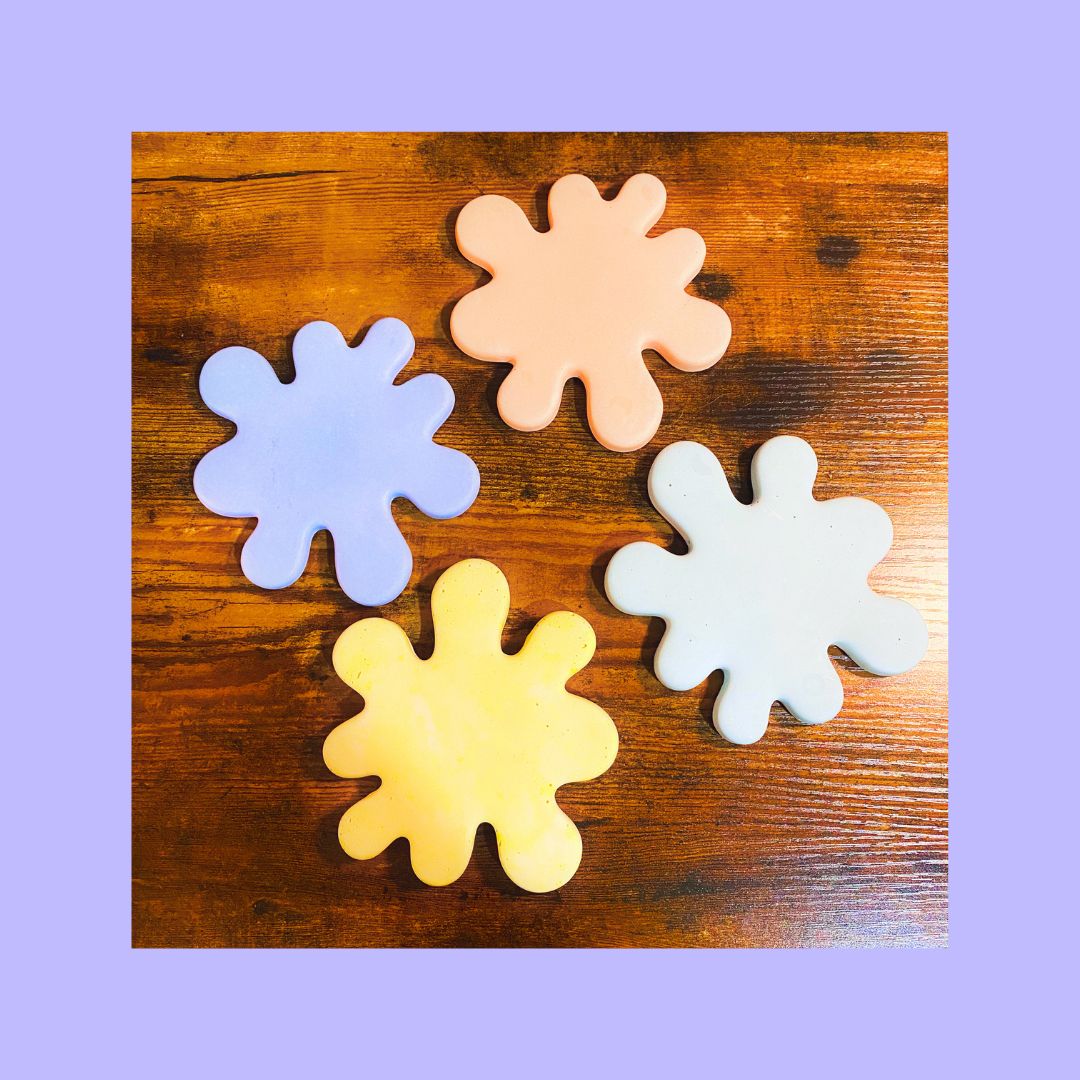 Want to add a splash of colour to your home? Snag some of our splatter coasters to funk up your home! Great to use as coasters for your daily drinks or as a base for candles and more.