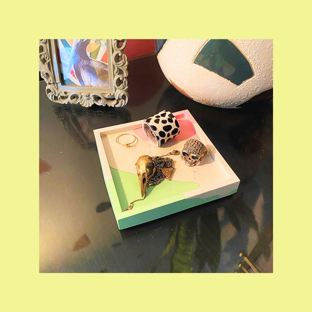 Need a place for all those things you don't know where to put? Our square catchall tray is great for those small items that don't yet have a home. Doesn't hurt that this tray is funky AF!