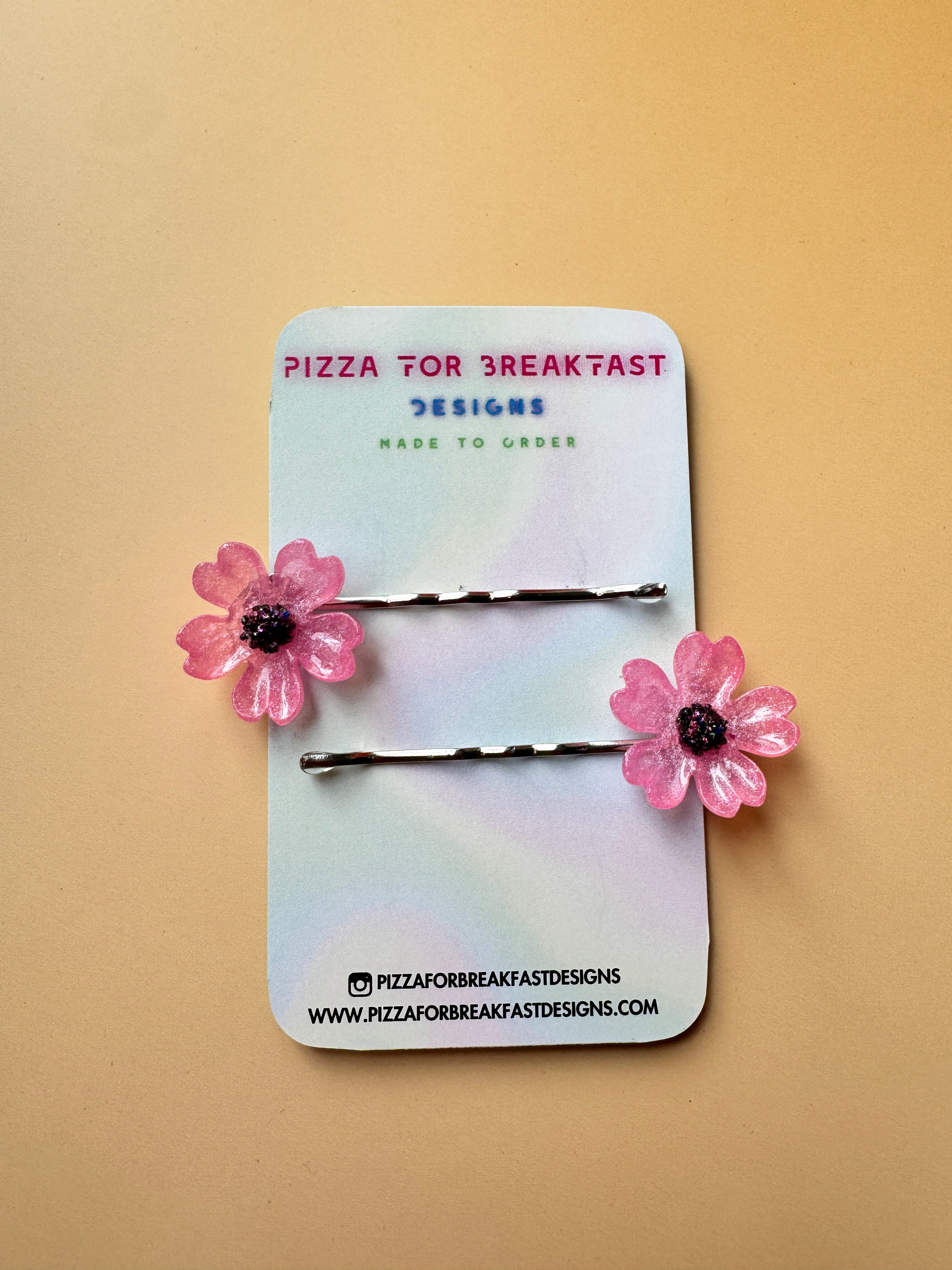Hold your hair in style with these charming Blossom Bobby Pins! Featuring delicate flower accents paired with shimmering pink with gold pins. Whether you're getting ready for a special occasion or just want to brighten your day, these pretty pins make hair care feel like a celebration!