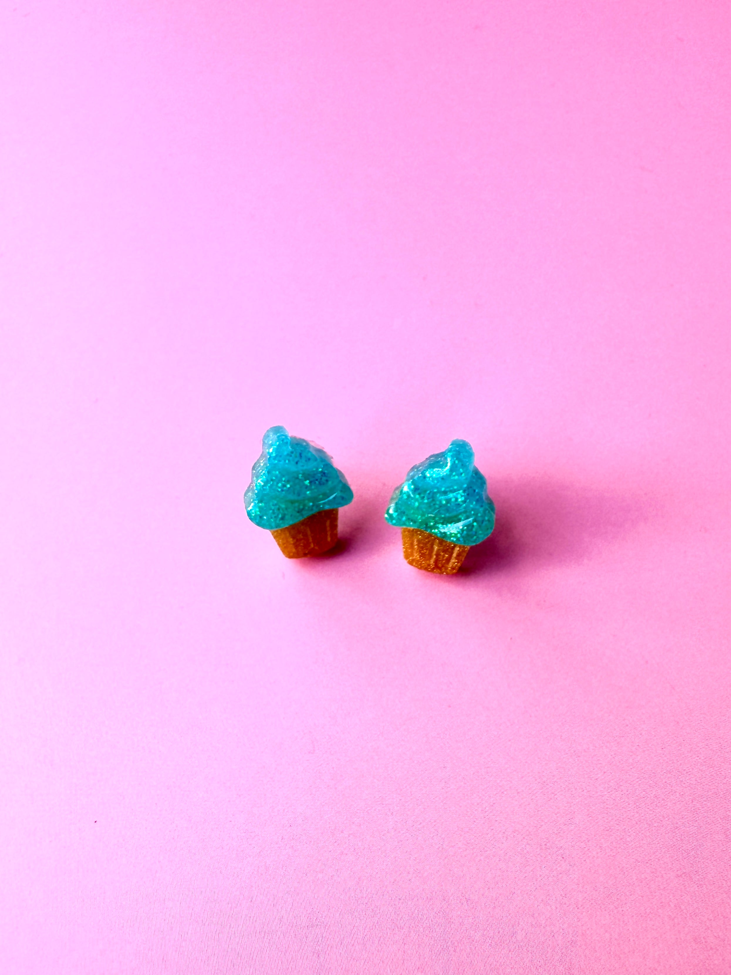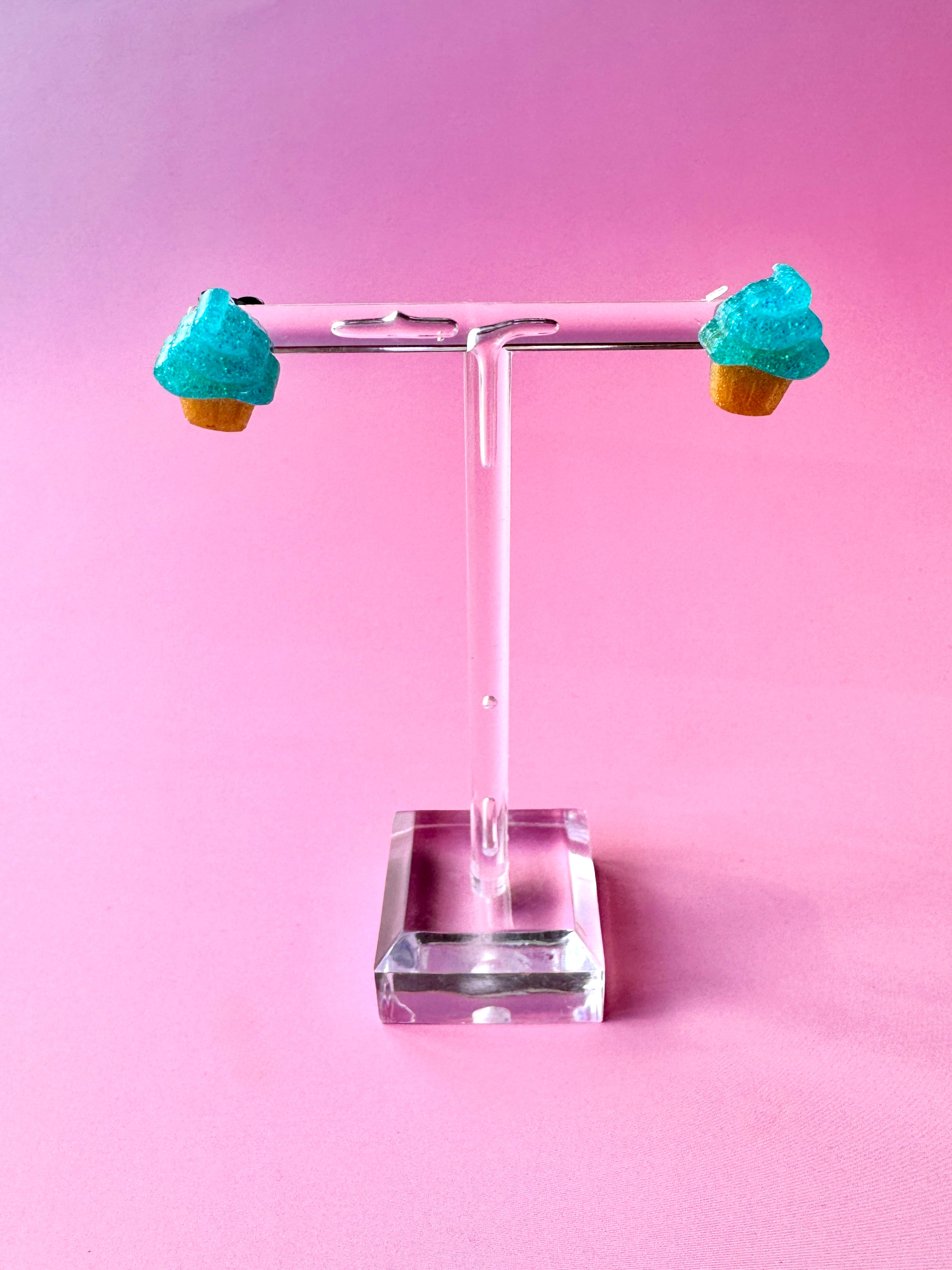 Cupcake Studs - Blue Glitter